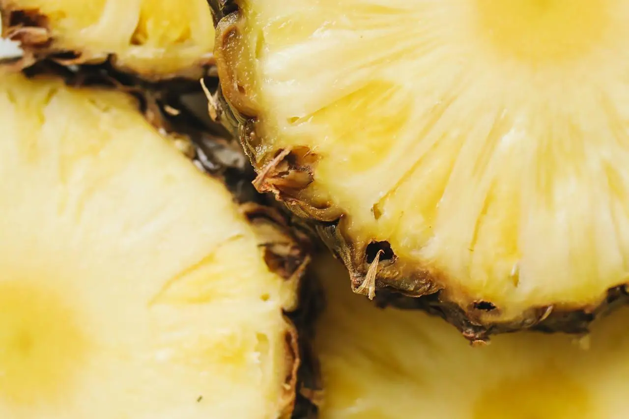 - Ananas dostarcza witamin, błonnika i enzymu wspomagającego trawienie.